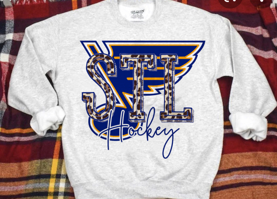 B L U E S hockey sweatshirt leopard