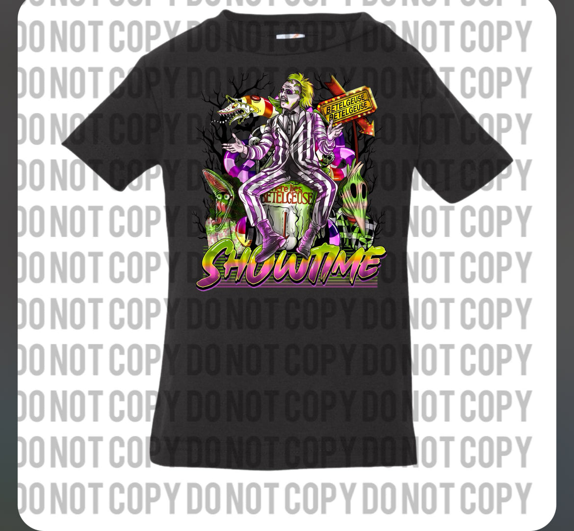Runs true to size. Watermark will not be applied to shirt. Only there To protect the image from being taken from shirt to use.